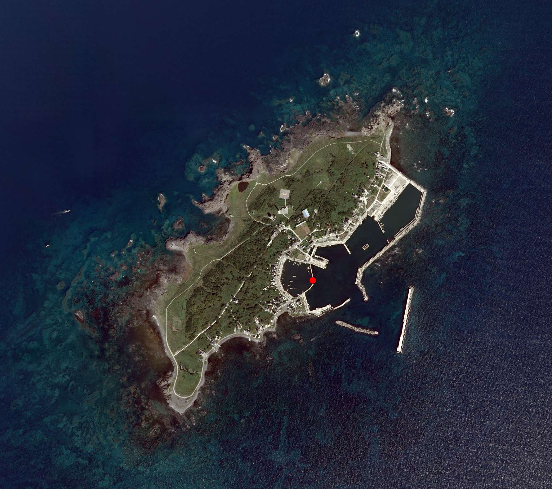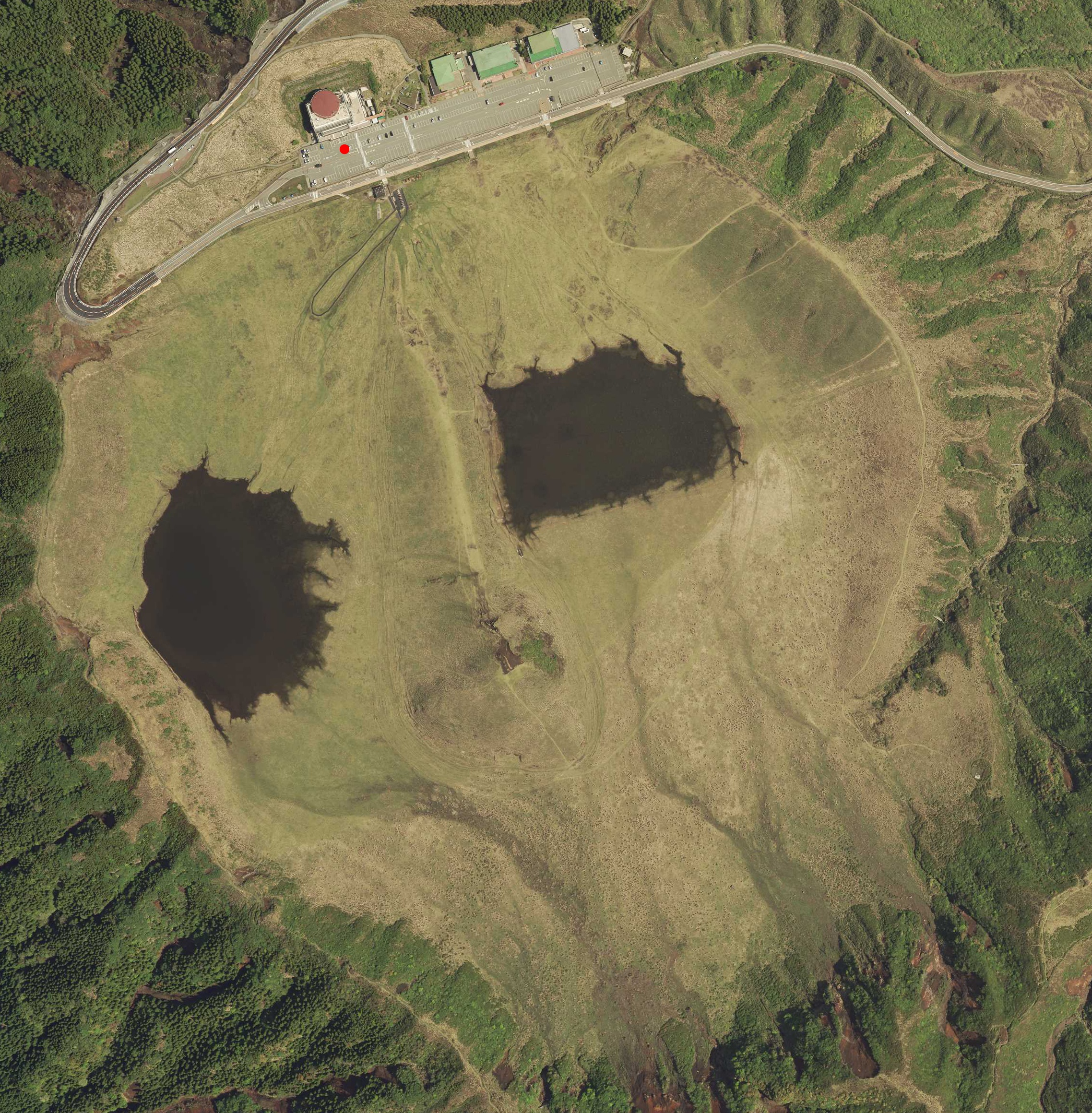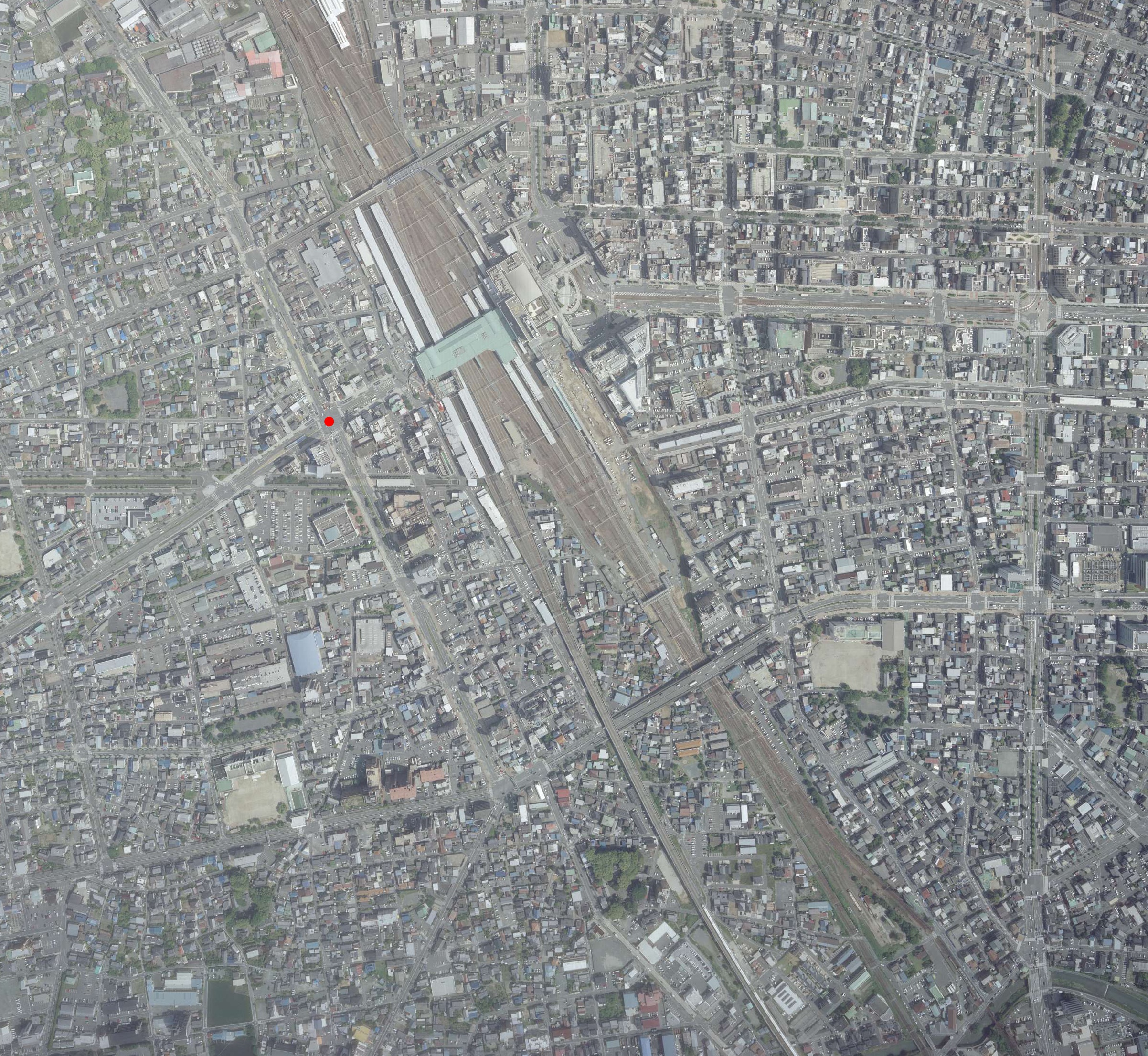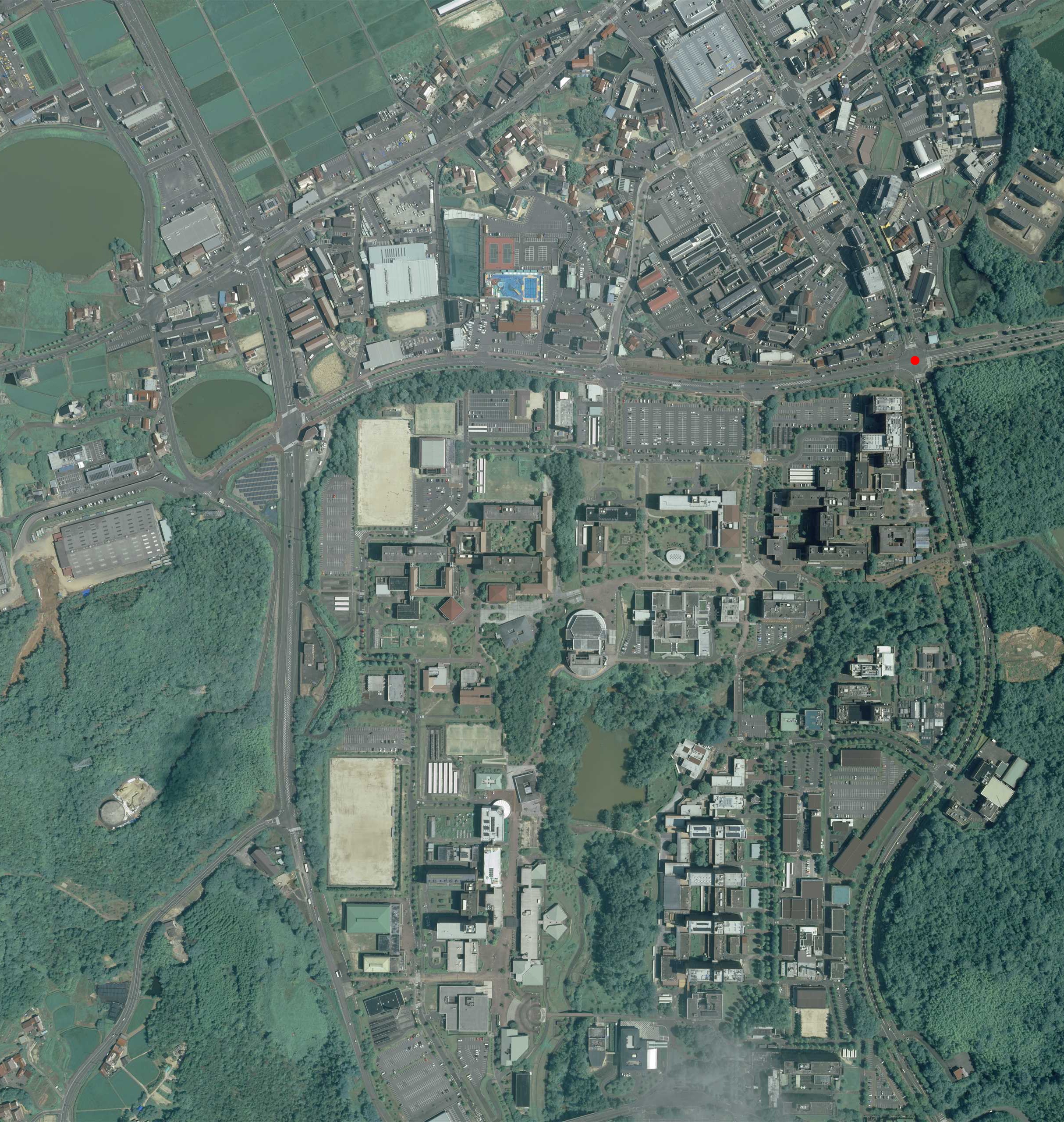 以下は日本国内の航空写真です。入力で整数 i が与えられたとき、図 i の赤丸で示した部分の緯度、経度を実数で出力してください。 出力の絶対誤差・相対誤差のいずれかが 0.0001 以下の場合正解とみなされます。 全航空写真の出典: ・「地図・空中写真閲覧サービス」(国土地理院) https://mapps.gsi.go.jp/ をもとに tozangezan 作成図1